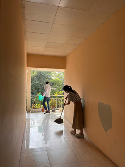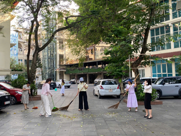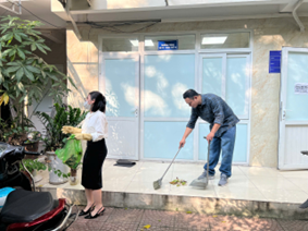 Dọn dẹp vệ sinh trong khuôn viên Viện